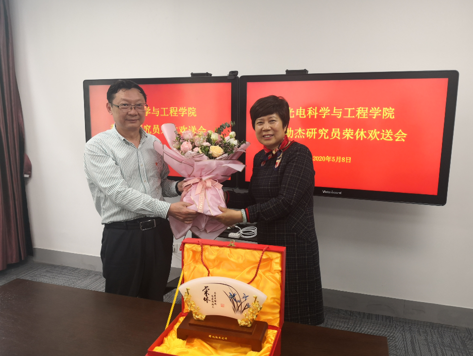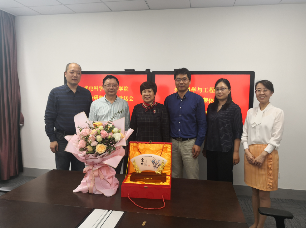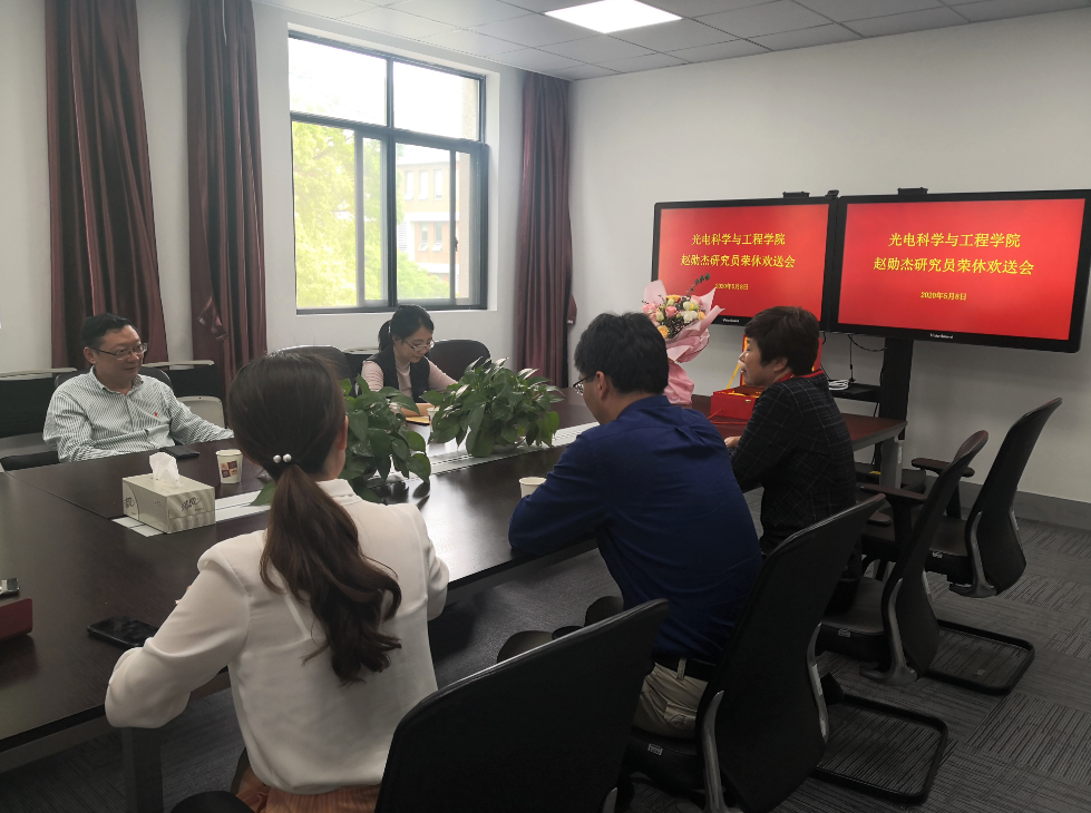 5月8日下午,皇冠博彩 为2020年度退休的教职工举行荣休欢送会,这也是光电学院首次为退休教职员工举行荣休仪式。学院2020年退休教职工赵勋杰研究员,院党委书记陈建军、院长李孝峰等学院领导,学院分工会主席,教职工代表等参加了此次活动。