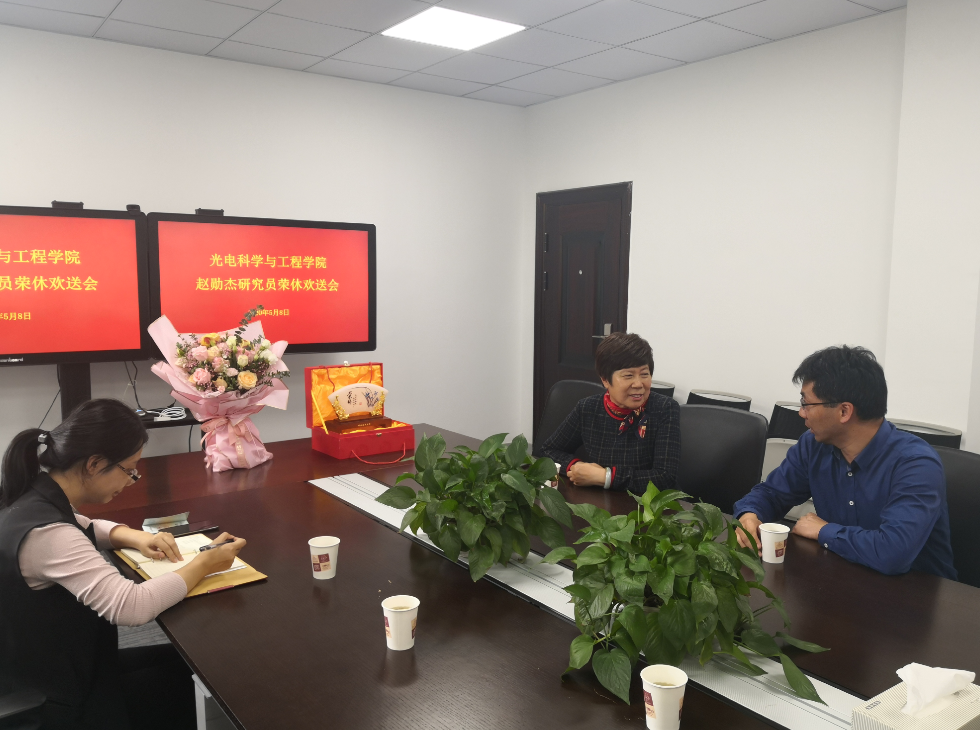 李孝峰高度肯定了赵勋杰研究员高尚的师德与精湛的师技。期待赵老师在退休后,能继续发挥余热,弘扬循循善诱的师风,传导精深高超的师技,进一步提升光电学院尊师重教的好氛围。