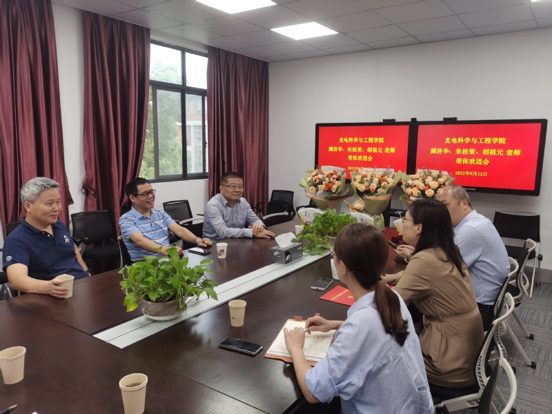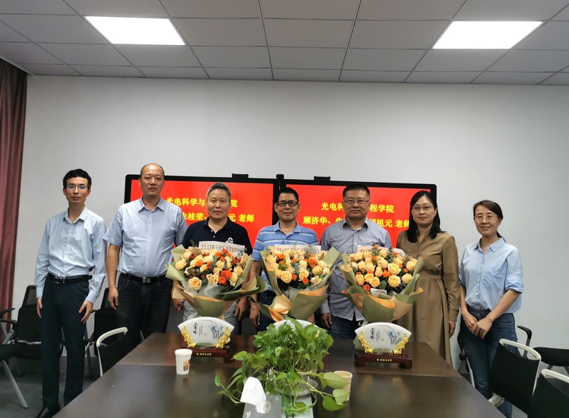 龚呈卉书记代表学院党政领导班子向无私奉献、把青春和智慧奉献给教学科研事业并为学院发展做出巨大贡献的三位退休教师表示崇高的敬意、衷心的感谢和诚挚的祝福;希望退休教师们继续关注、支持学院的发展,继续发挥学识优势、阅历优势、威望优势,做青年师生成长的引路人、做光电故事的宣传员。